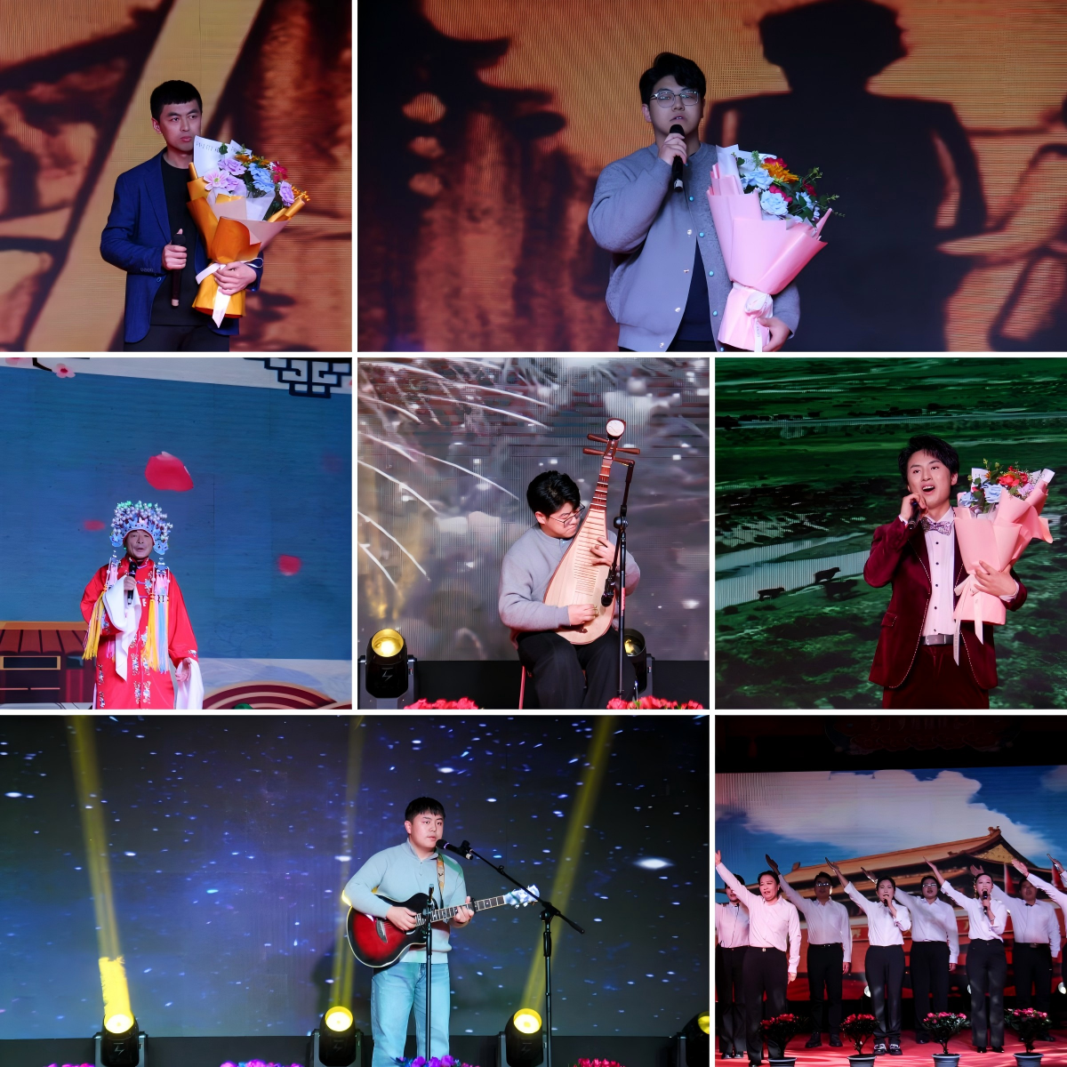 歌曲与器乐表演尤为亮眼,既有豫剧《金水桥》的经典韵味,也有《成都》《父亲的草原母亲的河》的深情演绎,还有吉他弹唱《海阔天空》、合唱《我们走在大路上》的激昂旋律,搭配琵琶独奏《金蛇狂舞》的灵动音符,轮番上演的精彩赢得现场阵阵掌声。